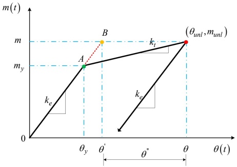 Existen dos tipos de articulaciones plásticas: las que corresponden a relaciones momento-rotación y las que corresponden a fuerza-desplazamiento. Para un comportamiento bilineal se utilizan las relaciones momento-rotación, donde la variable m representa las acciones en las articulaciones plásticas, es decir, f = (m 1 , m 2 ,…, m q ) T y la variable θ para las reacciones totales en las articulaciones plásticas, es decir, Λ = θ 1 θ 2 … θ q T